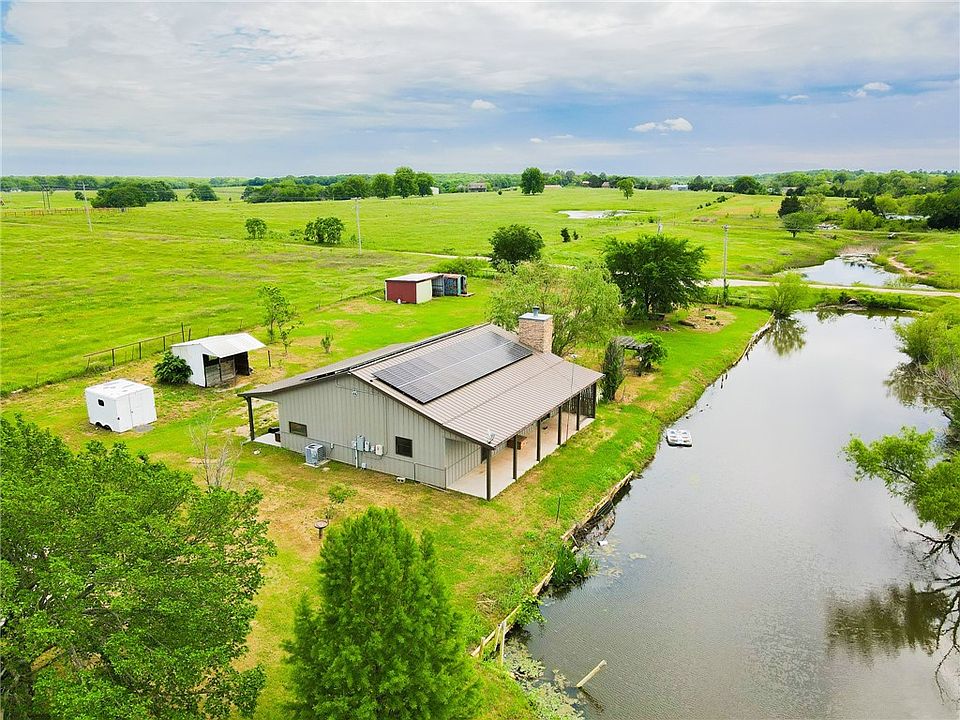This 29.86 acre property is just north of Seminole right of 99A. The property features a 1,665 sq ft Morton building home built in 2013, a beautiful 1.3 acre stocked pond, 15+ mature pecan trees, fully fenced and cross fenced. Set up to hold livestock with two separate 8+/- acre pastures. A third pasture on the south side of driveway leading into property is currently fenced on 3 sides and could be used for hay production or fenced on the driveway to create another pasture. There are multiple storage sheds and a loafing shed on the property as well. The Barndo features all steel construction, stained concrete floors, 2 beds, 2 baths, office, wood burning fireplace, and 50 solar panels! Seller has stated that the utility bills are around $20 a month in the summer and $60 in the winter! The covered back porch overlooking the pond, pastures and evening sunsets will not disappoint. The property sits just minutes from I-40 and highway 99 connecting you to Seminole, Shawnee, and the OKC metro. Just far enough away to enjoy the stars and quietness of being in the country.