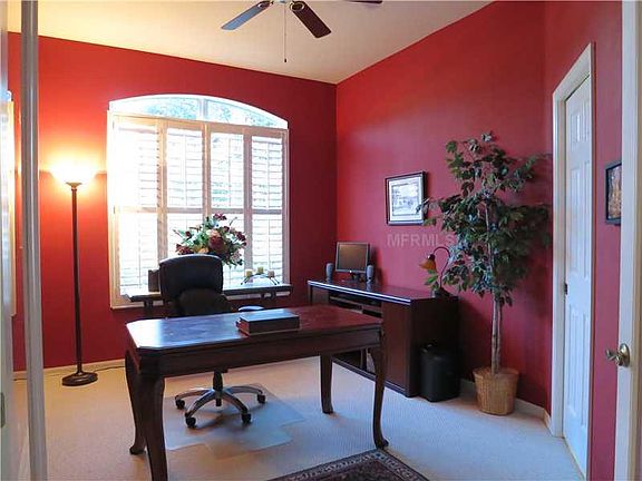 Exceptional true 4 bed, 3 bath pool home with a den & 2 car garage. This stunning tile roof Medallion built home is in move-in ready condition. You'll enter through double doors into the foyer and immediately view many of the upgrades that are featured with this home including the tray ceilings and tiles on the diagonal. Glass doors lead to your roomy study/den that also has access from your master bedroom suite. The home has been tastefully painted with decorator colors. Living room & family room have sliders to the pool & spa area. Dinner can be brought to your formal dining room through your butler's pantry that has cabinets, counter space and wine storage. The spacious kitchen includes all the appliances, corian counters, wood cabinetry, a built-in desk and breakfast area that has views of the pool area through the aquarium window. You'll enjoy the master ensuite with sliding glass door views of the caged pool and spa. You get 2 walk-in closets and planter's shelves for decorating. The master bathroom has double sinks, a round tub bath and walk-in roman shower. Past the kitchen, behind a pocket door for privacy, you'll find 2 bedrooms and a full bath with a tub/shower combination, wood cabinetry and single sink. At the back of the home is your 4th bedroom with the 3rd bath that has access to the pool area. The home backs up to trees. New A/C. Located in beautiful River Woods lined with mature landscape. The neighborhood offers a community pool, tennis courts and a clubhouse with Fitness Area.