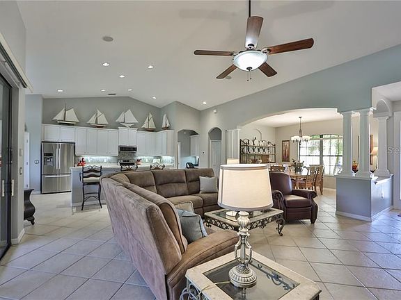 - Interior Features: Ceiling Fans(s), Eating Space In Kitchen, High Ceiling(s), Master Bedroom Downstairs, Open Floorplan, Split Bedroom, Solid Wood Cabinets, Kitchen/Family Room Combo, Solid Surface Counters, Cathedral Ceiling(s)