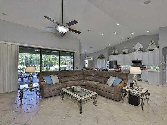 Pristinely maintained inside and out. This home has so much to offer from the exquisitely upgraded landscaping with new panel controlled irrigation system, lighting that surrounds the entire home, large heated pool and open interior floor plan. Upon entry you are greeted with pool views and a gracious great room open to your chef's kitchen. The kitchen has stainless steel upgraded appliances that include a Bosch dishwasher and Samsung convection oven. Light kitchen cabinets have been professionally refinished with pull out drawers and built in organizers. Along with the multitude of cabinets there is a double door pantry, built in desk area, eating area for table & chairs and a breakfast bar. Tile flooring flows throughout except for the 4 bedrooms that have newer carpet. Your formal dining room is spacious and allows plenty of space for those holiday gatherings. The great room has sliding doors that provide beautiful water/preserve views and lead you to your covered/screened lanai/pool area. Master bedroom also has pocket sliding doors leading to the lanai/pool area. Master bath has separate vanities, garden tub and walk in shower. Two additional guest bedrooms and bath are located in a separate area of the home and have a pocket door to close off this area for your guests added privacy. The 4th bedroom and a third bathroom are located off the kitchen, again allowing total privacy. This bathroom is also used as the pool bath with access from a door off the kitchen. The large inside laundry room includes a sink and has plenty of room for your washer and dryer. Newer interior painting provides soft color tones and exterior painting was just completed. Your poolside oasis awaits you where you will enjoy year round swimming in your heated pool that has a new pool pump, child safety fence and solar blanket. This is the perfect spot to enjoy a beverage or just relax while enjoying stunning water/preserve views. With the oversized pie shaped lot you will love the added privacy this home has. In addition, some of the many upgrades not already mentioned include all new faucets, new hot water heater attachment that provides instant hot water, all new ceiling fans, insulated garage door, whole home surge protector, all hardware inside all windows replaced and plywood with plylox for all windows if needed for hurricane covers. A/C is only 5-years old and there is a side entry garage with extended driveway. This is a truly move in ready home in Lexington community that is conveniently located within minutes of shopping, restaurants major highways and so much more. Some of the furnishings are available under separate purchase.