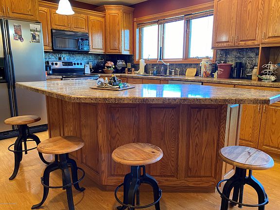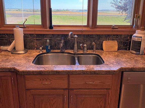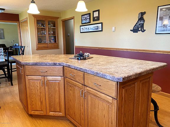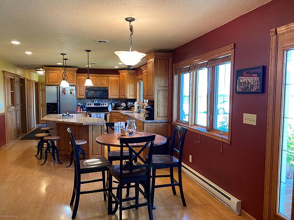 Don't miss your chance! This great ranch style home located just west of Dickinson on highway 10 has everything you need including an awesome 30x40 heated shop! Sitting on 1.3 acres, this 6 bedroom, 4 bathroom home has beautiful woodwork, a large kitchen to gather in, great views and privacy with mature trees. The basement is perfect for movie nights or entertaining and features an awesome wine cellar! The fenced in yard has underground sprinklers served by a well and the home has southwest water. Own your own little piece of country with no gravel roads - just 3 minutes from town!
