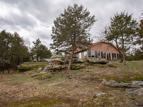 This one of a kind secluded property just 8 miles west of Republic, nestled in a grove of cedars and sandstone is one you will want to see! Home sits on 25 acres, with 2 ponds, outbuildings, and yet quick drive into town. Master bedroom is on the main floor with a walkin shower, kitchen, multiple living areas- one being a sunroom, and utility. Upstairs you will find: 2 bedrooms and a full bathroom. Zoned HVAC, downstairs is one unit and each bedroom upstairs has it's own wall unit for heating and cooling. Property has a nice mix of open pasture and timber as seen in pictures. Newer 1008 sq' 3 car garage/workshop (24'x42') with 16' x 42' loft w/ 8' ceiling, suitable for finishing into guest quarters or leaving as is. Other outbuildings and some newer fencing, fencing is partial.