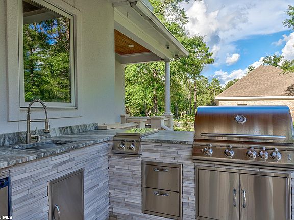 This European Style Residence Is A True Example of Exquisite Craftmanship, Elegance & Sophistication! Perfectly Located With Easy Access To Mobile and Pensacola In Gated Beau Chene Estates, This Home Is The Epitome Of Luxury. A Genuine Stucco Façade, Flickering Gas Lanterns & Wrought-Iron Doors Welcome You Into A Soaring 20’ Foyer Featuring A Sweeping Stairwell With Wrought-Iron Balustrade, Polished 24” x 24” Stone Floors & A Grand Chandelier. The Formal Living Room Opens Into A Two Story Great Room. A Pair Of Mahogany French Doors Allow Guests To Spill Out Onto A Large, Patio That Overlooks a NEW, Sparkling Heated Pool w/ Tile Jets, Bubbler, Pool Ledge, Colored Lights, & Fire Pit, All Remotely Operated. This Meticulously Crafted Masterpiece Features A Gourmet Kitchen With Spectacular Inset, Soft Close Cabinetry, Quartz Counters, Marble Floors, Sub-Zero Refrigerator, Wolfe Oven & 5 Burner Gas Cooktop, Waterstone Faucet & Oversized Pantry With Second Refrigerator. An Outdoor Kitchen w/ Gas Grill, 2-burner Cooktop, Beverage Fridge, Granite Counters & Sink Was Recently Added. The First Floor Primary Suite Boasts 8’ Mahogany French Doors That Open Onto A Private Balcony That Overlooks The Pool. An En-suite Primary Bath Features An Out Of This World Shower With Hans Grohe Faucets, Freestanding Soaking Tub And Marble Floors. Not To Be Missed Is The Exquisite Guest Bath With Inlaid Marble Flooring, Kallista Vanity, Faucet & Toilet. The Upper Level Has 10’ Ceilings And Leads To Four Large, En-Suite Bedrooms, Theatre Room With It’s Own Balcony, Wet Bar, Half Bath, Large Screen & Projector. This Quality Built Home Has Jeld Wen Windows, Emtek Hardware, 8’ Wide Interior Doors, 2 Tankless Water Heaters, 3 Attic Spaces, 3 HVAC Units, Side Entry Triple Garage, New Landscaping, Zoysia Grass & A Circular Drive.