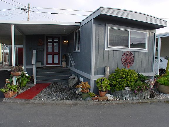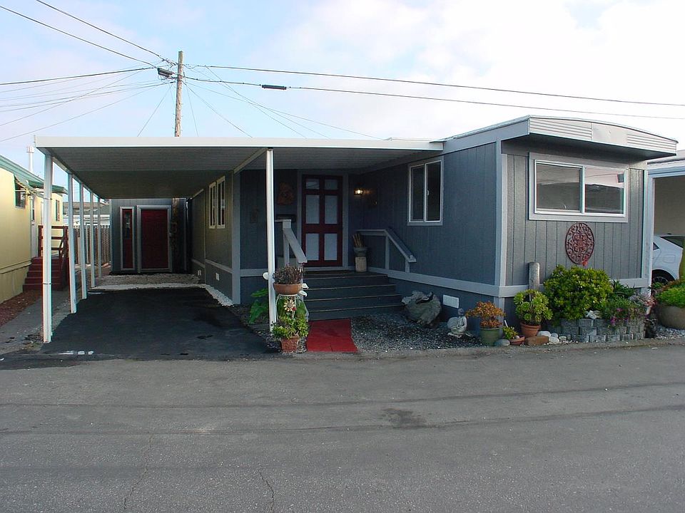 NOW $139,500. This home is in a SENIOR Community 55+ age requirement. Space Rent is $775. monthly. The Seller has lovingly maintained and improved this home. It has a custom made, tall (8 X 12) shed it has a newer Roof (commercial type coating), carport awning, a recent Water Heater, Stackable Washer/Dryer, refurbished porches Front & Back, New carpeting in the bedroom suite, resurfaced Parkay floor, new toilets, fresh Exterior paint, Dual Paned Windows, and a New refurbished Front door the outlets are GFCI protected in the kitchen and baths. Previous owners had bull nosed plastered the walls on the interior. It's been landscaped with easy care succulents and it's an easy walk to Stores, the Rec Trail, and the Beach. Enjoy affordable retired living here in paradise on the Monterey Peninsula!