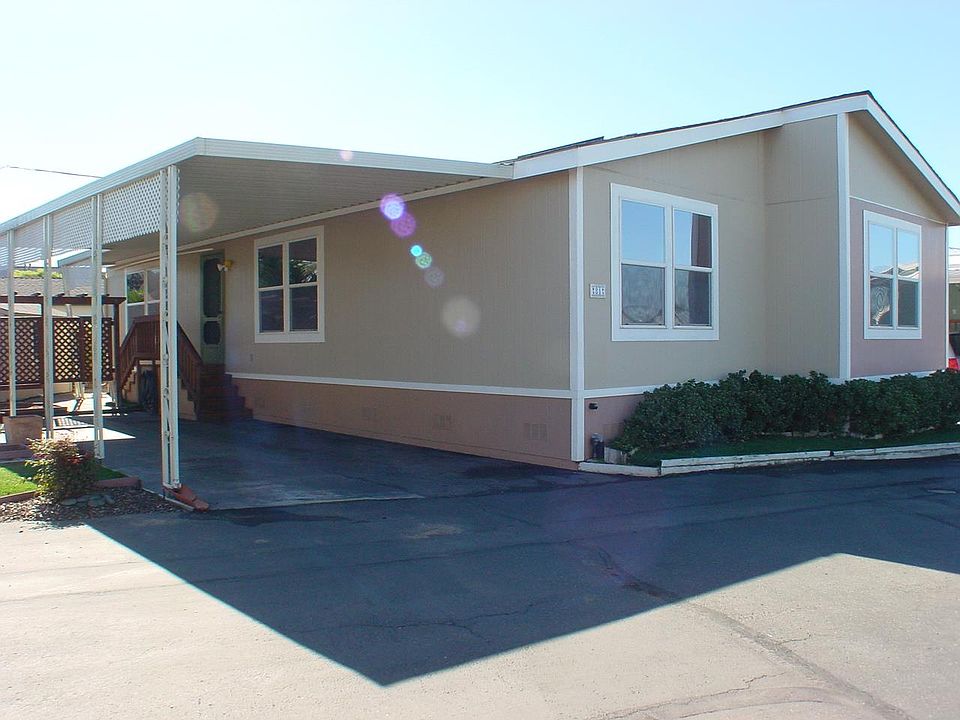 Seniors here it is..... the highly anticipated home in the corner of the park! It's the biggest home, the best home, with a yard and a shed. Built in 2005 and has had one, single, owner since then. This owner had upgraded the kitchen and baths from the time of purchase. (Not original). Now there are shaker style cabinets, nickel plated pulls, stainless steel appliances, travertine floor tiles, and corian countertops which are still in very nice condition. Bring your landscape plans for the most room in the park to create your garden sanctuary. ( All exterior work must be park approved). This park is conveniently located near a variety of grocery stores, box stores, the bike/recreation trail and is less than a mile from the beach. Enjoy retirement living on the West Coast Riviera! This is a 55+ Senior Community.