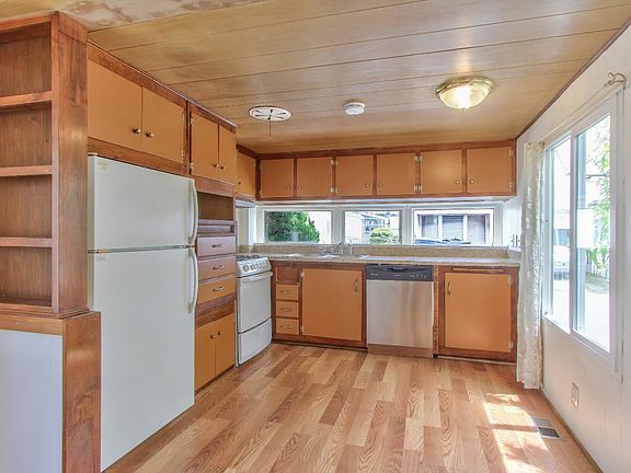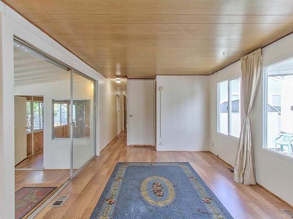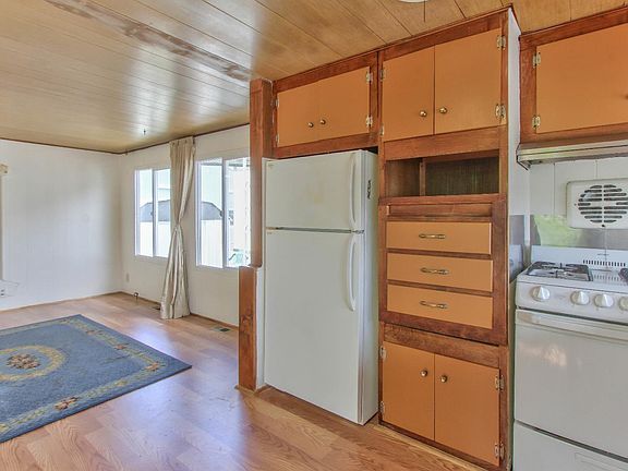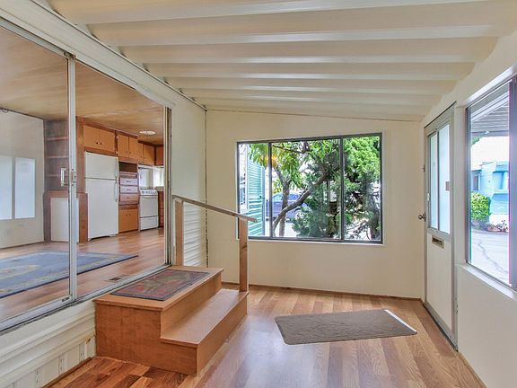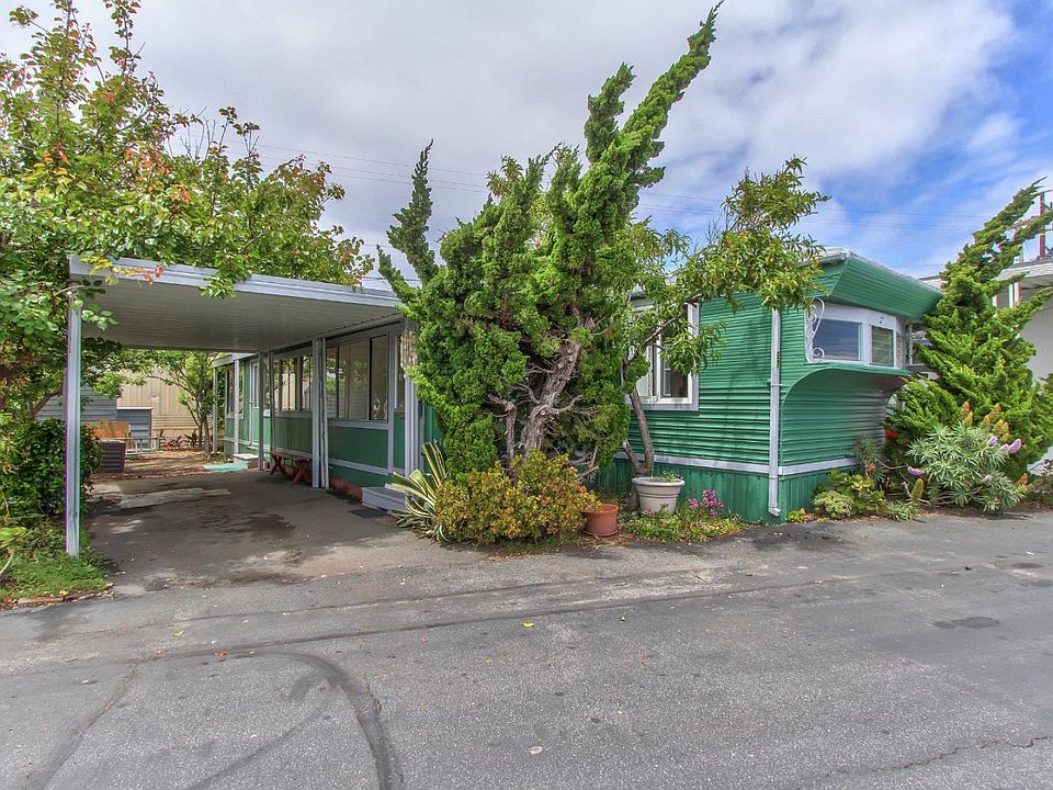 This mobile is located in a Senior, 55+ community. The unit is single-wide, with enclosed porches added. The unit has been cleaned, freshly painted, has new flooring, two bedrooms, and a very clean, single bathroom. It is basic, but quite charming, and would be a good space for you to hang out and relax. It is among the least expensive housing on the Peninsula. To be clear, you buy the unit, but you rent the space. The space rent is currently $695 per month, which includes garbage. Buyers of the unit must qualify as to income and credit with the park management. Owner could finance purchase to qualified buyer, for 10 or 15 years.