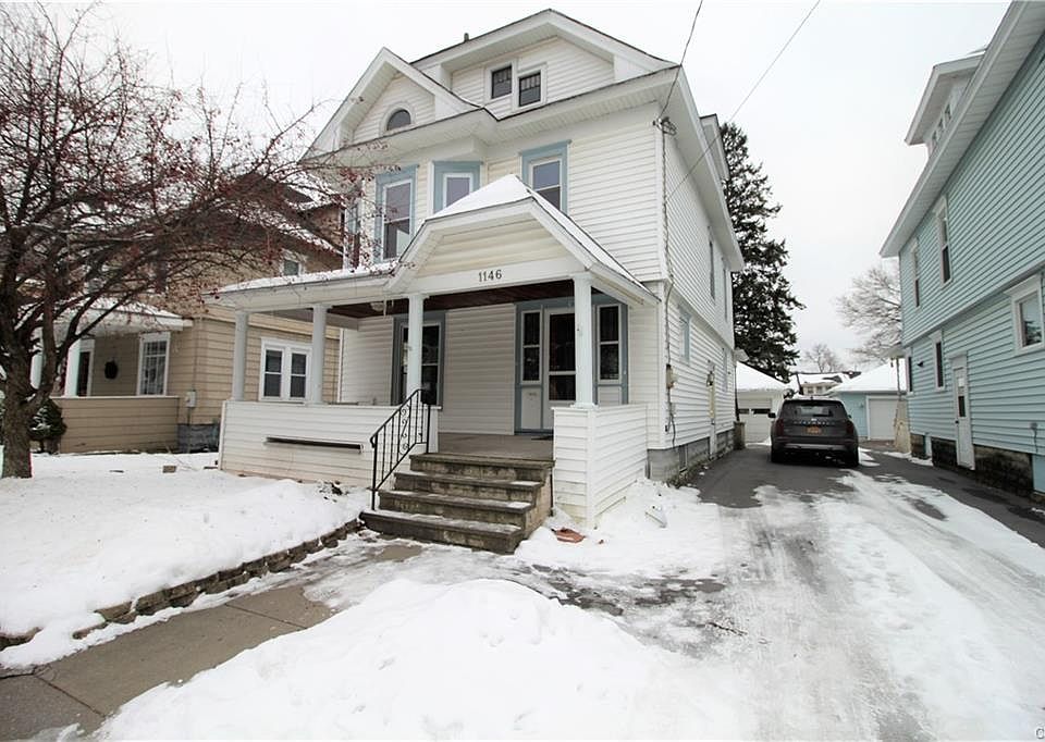 What I LOVE about this home is the charm of the original woodwork of the era it was built. When you enter the foyer the stairway and trim going into the living room is amazing, it continues throughout the home. The rooms have lots of windows and are nice and bright. Functioning pocket doors between the living and dining rooms are beautiful. The flow of the first floor is functional, the dining room and kitchen are open with a great island between. Nice size kitchen with granite counter tops and an abundance of cupboards. The first floor has the primary bedroom at the back of the house with 3/4 bath and walk in closet. This room would also make a great family room. Laundry/mud room is off the kitchen. On the second floor there are 3 bedrooms and a full bath. One of these bedrooms is large enough to be the primary with 1 wall of closets. The walk up attic is dry with plenty of space and could easily be finished. The basement has a LOT of space for more storage as well as a workshop. Outside there is a bi-level patio with a great, fenced back yard. This home is just a few blocks from the park, close to amenities, and about 10-15 minutes to Fort Drum.