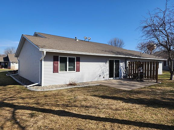 This one level townhome located near the golf course features kitchen with new appliances included, six panel doors, coved ceilings, owner's suite with a walk-in closet and private full bathroom, and an additional bedroom plus a 3/4 bathroom. The roof and siding are newer. Double attached garage, front and back patio areas, and view of city park. Association takes care of snow removal and lawn care.