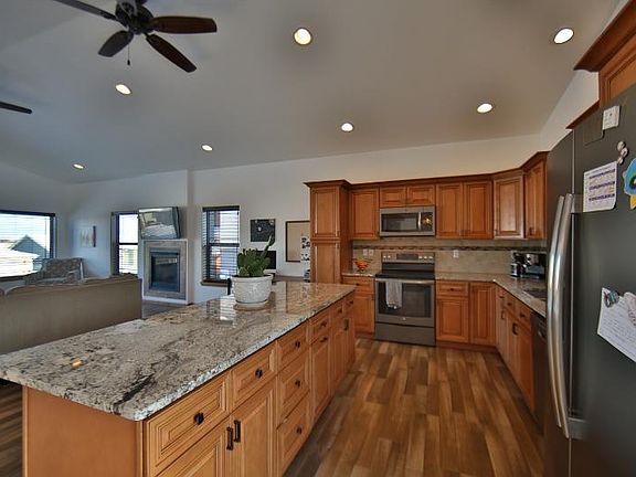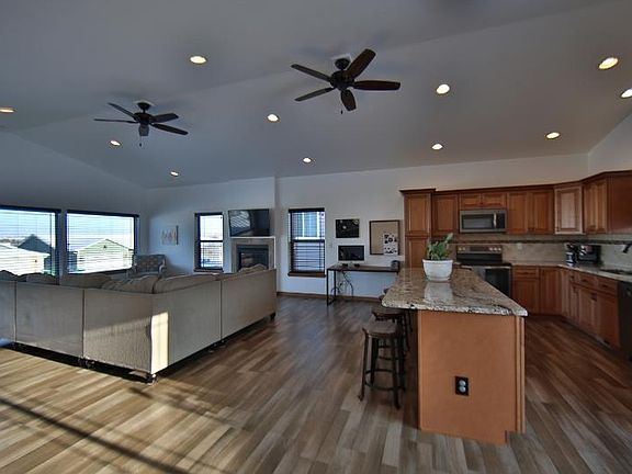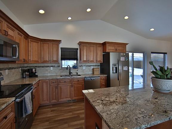Gorgeous views! Clean! Move-in Ready!! This 4 bed, 3 bath home is situated within walking distance of an elementary with lots of perks for a 2-year old house over and above an over-sized, heated 2-car garage. A roomy fenced yard, sprinkler system,raised garden beds, and window treatments are great perks already completed, so there are no out-of-pocket expenses here, just move in! Attractive and durable LVT flooring, a gorgeous open-concept kitchen with granite counters, and vaulted ceilings make for a grand space on the main level of the home while the basement works great for a second family room! Last one just like it sold for $359,900 without all the perks!