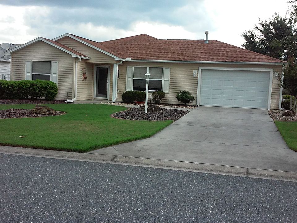 Austin Ranch model. Tile floor in kitchen and lanai. Acrylic sliding floor to ceiling windows in screened lanai . Centrally located in The Villages, Florida. One mile to Lake Sumter Town Square. Very close to several golf courses, neighborhood/sports pools, and pickleball/tennis courts. Neutral colors and well kept with vaulted ceiling.