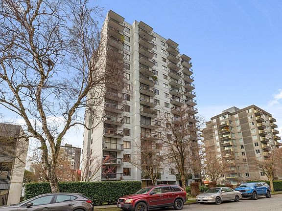 Bright one bedroom CORNER suite in The Lamplighter building. Classic floorplan offers close to 600 sqft spacious & efficient layout with lovely treed neighborhood outlook. Features oak laminate floors, contemporary white kitchen cabinets & appliances, good closets & storage. In great condition & ready for you to move-in. Highly regarded solid CONCRETE, FREEHOLD STRATA building with diligent maintenance reputation & live-in caretaker. Re-plumbed, updated concrete exterior & balconies, renewed parking membrane & landscaping. Prime WEST END location, just steps to Sunset Beach, English Bay seawall, restaurants & shopping. Excellent 1st time, investment or retirement property. Rental ok, no pets. Parking stalls at $45/mth from strata. Easy to view.