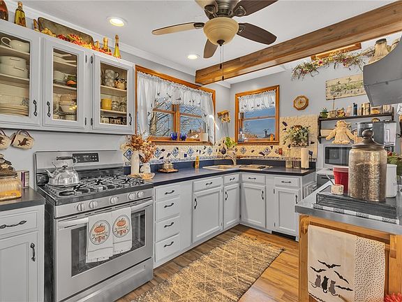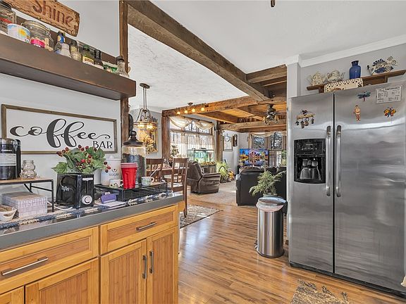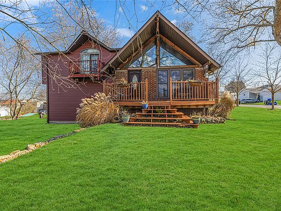 1146 Hickory St is like living in a vacation retreat! From the A-frame structure, to the 200 year old barn beams lining much of the interior, the rustic vibe throughout this home is so warm and welcoming. Add the lovely lot surrounded by mature trees, offering privacy galore, and you may never want to leave home! Loaded with charm and character, there is nothing cookie cutter about this one! The Master Suite, offering a generous bath, walk in closet and private balcony is like no other. The size will amaze you! The upper level also offers a second full bath, second bedroom with laundry and an open concept office (which could convert to 3rd BR). This is the postcard version of "working from home"! Additional features include a newer roof, brand new siding, a newer furnace, an oversized 2 car garage, amazing windows, a full basement and incredible curb appeal! As luck would have it, this home was meant for holiday decor! Check it out!