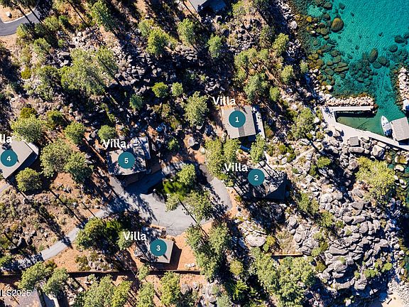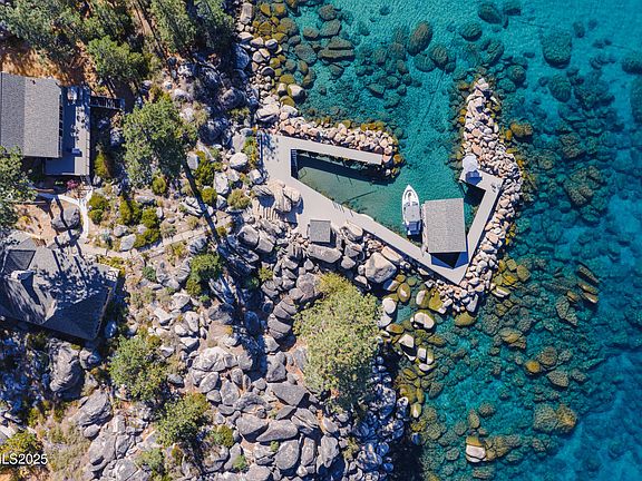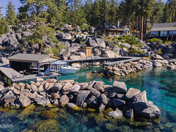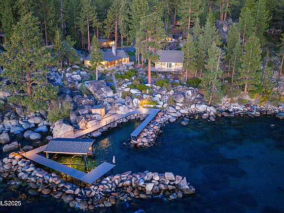 A rare 3.45-acre lakefront compound where Old Tahoe heritage meets modern luxury and lifelong memories are made. Experience the soul of Lake Tahoe at the Hidden Harbor Legacy Estate, offering 230+ feet of pristine shoreline, a grand harbor-style pier with breakwater, boathouse, internal hoist, two buoys, and a protected private harbor with deeded water rights. Set within a secluded, gated enclave surrounded by massive granite boulders and crystalline turquoise waters, this timeless retreat blends classic Tahoe character with refined contemporary craftsmanship—delivering serenity, seclusion, and spectacular Mount Tallac and sunset views from nearly every vantage point. Designed for recreation, relaxation, and connection, the estate features a circular driveway, manicured lawns for gatherings, and dedicated lake gear storage. Hidden Harbor's waterfront amenities are extraordinary: an expansive 1,900+ sq. ft. pier, a boathouse, boat lift, pier lighting, and a protected sandy harbor with breakwater jetties, all creating a private waterfront playground for boating, swimming, and golden Tahoe evenings. With its rare scale, privacy, and unrivaled waterfront infrastructure, Hidden Harbor Legacy Estate is ideally suited as an extraordinary multi-generational family compound, executive retreat, or corporate wellness getaway, a once-in-a-generation offering on Tahoe's Nevada shoreline. Five fully renovated lakefront villas embody mountain-modern living, each offering breathtaking lake views, designer finishes, fireplaces, heated-floor bathrooms, full kitchens, dining areas, laundry, and private composite decks. At the heart of the estate, Villa One serves as the communal lodge—crafted for effortless entertaining and family connection—with a striking bar, open living and dining spaces, two full bathrooms, a loft, and dual sliders opening to a panoramic view deck. Villa Two, the primary suite villa, offers vaulted ceilings, a spacious bedroom, spa-style bath with heated floors, gas fireplace, bar, chef's kitchen with slab granite counters, and a custom kids' loft. Villas Three, Four, and Five are detached two-bedroom residences, each with full kitchens, fireplaces, living and dining rooms, laundry, and private Trex decks overlooking the lake. Villa Five also includes a carport for covered parking. With approximately 32,966 sq. ft. of verified TRPA coverage and 4,948 sq. ft. of unused allowable coverage, Hidden Harbor offers exceptional flexibility—whether preserved as a cherished family sanctuary or envisioned as a destination for corporate retreat and rejuvenation. Perfectly located just five miles from Heavenly Village, Edgewood Golf Course, and Stateline's entertainment corridor, and only half a mile from Zephyr Cove Resort, this rare lakefront property combines accessibility, privacy, and enduring legacy—all within 45 minutes of Reno-Tahoe International Airport. Hidden Harbor Legacy Estate is where family traditions, natural beauty, and timeless design converge—celebrating the very best of Lake Tahoe's Nevada shoreline.