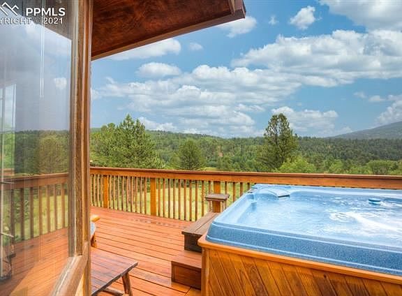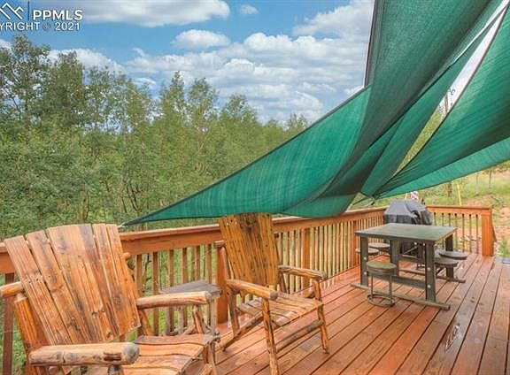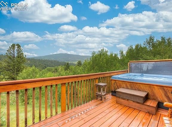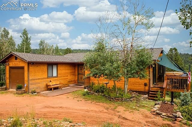 Welcome to this beautiful 3 bedroom, 2 bathroom mountain home nestled on over 1.68 wooded acres in the Cripple Creek Mountain Estates community.! There is stunning views from the wrap-around deck (and more) with hot tub. Garage is finished and insulated. The interior of the home offers main level living (if desired) with master bed and bath. All fixtures have been upgraded to Kohler. You'll love all of the windows (including the bay-type window in the living room) which offer views and passive solar heat during the day. The kitchen boasts granite tile countertops and a large breakfast bar. The floor plan is open and great for entertaining. The full master bath is attached with ceramic tile shower and floors. All bedrooms have a walk-in closet. There is plenty of storage on both levels. The walk-out basement is fully finished with a family room, beautiful stone-masonry gas fireplace, 2 more bedrooms, laundry area and a full bath. The furnace is high efficiency. This home comes furnished with beautiful mountain furniture if desired. The community clubhouse provides a heated indoor pool, a fitness center and a playground.