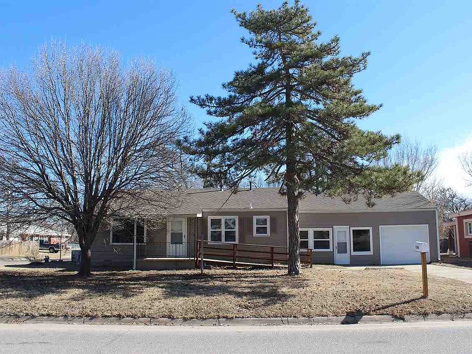 Lots of "New" in this Beautiful Corner Lot home. Three bedroom, one bath with attached one car garage. Large fenced yard with side street access. Over sized mudroom with access to the garage, backyard, front driveway and Kitchen. Large size Office/Rec Area downstairs with windows that look out to backyard. Completely new and updated Kitchen with Pantry and eat-in space. New Whirlpool Gas 5 burner Stove, New Whirlpool Vented Microwave Oven with light, New Hot Point Dishwasher, Beautiful Granite Counter tops with new back-splash, New Kitchen Cabinets with matching hardware, Beautiful Mocha brush coated double sinks, New dark oil rubbed bronze finish Aqua-source faucet with hand held sprayer on the nozzle with soap dispenser, New Cambridge LVT tile in both Kitchen and Bathroom, New bathroom Vanity/Mirror/Sink with new Moen faucet, New travertine tile steps to Mudroom/Laundry Room, New Vinyl flooring in Mudroom/Laundry room, New Windows, Carpet, Trim, Hall Linen Cabinet with matching hardware, 6 panel doors with matching dark bronze finish door knobs Vents, All Closets redone. New Hunter Ceiling Fan with remote in Living Room. One or More Owners of the property hold a real estate license with the State of Kansas