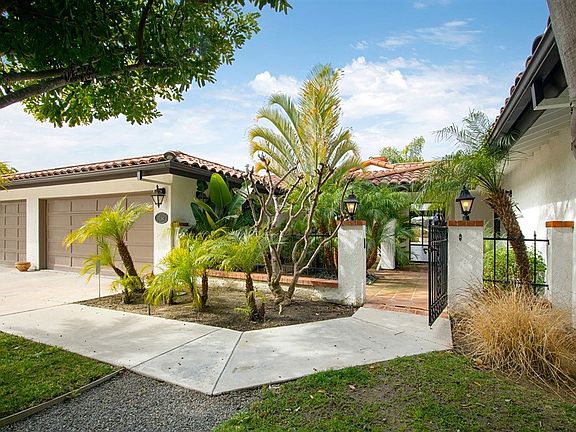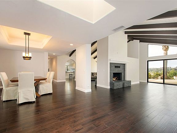Welcome to this highly upgraded single-level custom home offering breathtaking panoramic Olivenhain mountain and valley views. Sitting on over an acre in sought-after neighborhood and updated to perfection kitchen and baths. Gated front entry. Fabulous pool and spa. Vaulted ceilings with wood beams, plus a romantic dual faced fireplace in living room and family room. Elegant dining room with French doors opening to lush landscaped front courtyard. Modern kitchen featuring stone counter tops, designer back-splash and top of the line stainless steel Bosch appliances. Inviting wet bar complete with wine refrigerator. Luxurious master bedroom overlooking stunning views offering floor-to-ceiling stone fireplace, newly redone master bath complete with free standing Roman tub, marble flooring and surround and huge walk-in closet. Countless features and log: 4th bedroom set up as an office with custom built-ins. Custom wood shutters in bedroom 2 , 3 and 4. Close to shopping, top schools and beach. Fabulous sun room Large laundry room Over sized 3 car garage. Minutes to shopping, award winning schools and best beaches North County has to offer. Spacious laundry room Oversized 3 car garages No HOA, or Mello Roos