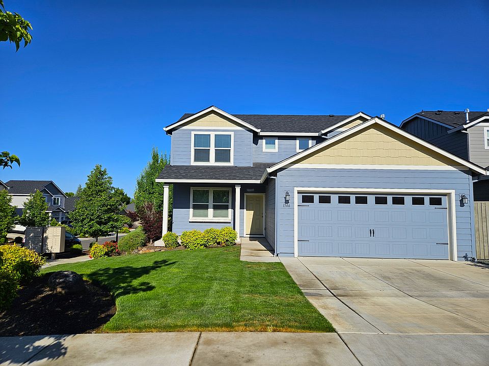 Great South East Medford home built in 2019. Conveniently located only a couple blocks to shopping(Larson Creek Shopping Center which includes Albertsons, fitness gym, restaurants, gas, coffee shop) and close to Centennial Golf Course, Asante Medical, and SE Medford amenities. This wonderful 2-story home has 1998 Square feet with tall 9 foot ceilings. Home has a total of 3 bedrooms plus separate office and 2.5 bathrooms. The first floor has a desirable open floor plan with open living room and kitchen/dining area. Also downstairs is a separate TV room(or office) with glass french doors and 1/2 bath. Living room includes cozy gas fireplace and direct access to the outside patio/backyard. Open kitchen with center island and pantry storage. Beautiful quartz countertops, stainless steel appliances (with gas range), and tile backsplash. Upstairs is the primary suite with walk-in closet and bathroom with dual-vanity, tub, and shower. Upstairs also includes two additional bedrooms, full bathroom, and laundry room. Other features of the home are a gas fireplace, Central A/C, 2 car garage, and fully fenced backyard with patio. Yard is professionally landscaped and irrigated. APPLIANCES: Refrigerator, oven/range, dishwasher, and microwave are provided. Tenant provides their own washer/dryer. Hookups are provided for electric(not gas) dryer. REQUIREMENTS: Owners require every applicant to have excellent rental references, 650 credit score, and stable verifiable income source. Household gross income must be at least 3 times the monthly rent. NO Co-Signers. PETS: One Pet with excellent prior references will be considered(with additional security deposit). No aggressive dog breeds such as pit bulls, rottweilers, etc. NO SMOKERS and No marijuana. ADDRESS IS: 1146 Rutherford Drive (cross-street is Sidney Way), Medford HOME IS AVAILABLE JUNE 5th RENTAL TERMS: $2495 monthly rent / $3200 security deposit (Additional deposit for pet). A $35 application fee per applicant 18+ y/o for credit and background check after initial application information is processed. Tenant pays all utilities including Medford sewer except garbage. Owner pays for and provides landscaper. Owner does not require a fixed lease but would like a long term tenant.