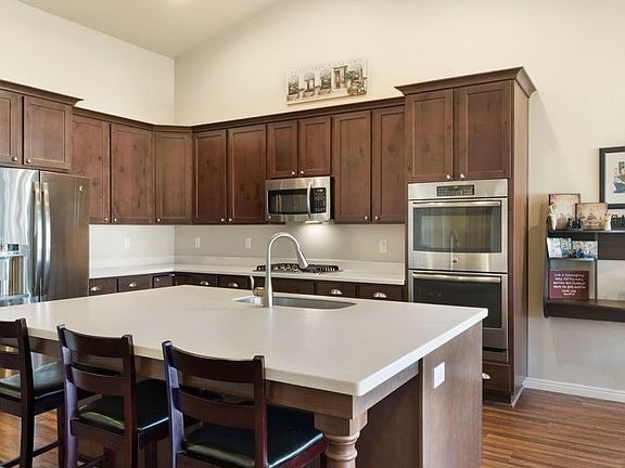 Located in the highly sought-after Foxboro North community on a quiet cul-de-sac. Custom wainscoting in the entryway leads to a vaulted kitchen, dining area, and family room. Gorgeous kitchen with large island, soild surface countertops, extra height cabinetry, and stainless appliances. Private master suite sits at the back of the home with garden tub/separate shower, soild surface countertops, dual sinks, & walk-in closet. Ample storage: in the laundry area and the space above the garage.