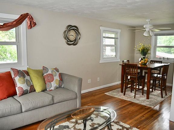 Charming raised ranch style home on a quiet dead end street on cull de sac conveniently located close to area restaurants and shopping with easy highway access. 2 Bedrooms, Bath with original hardwood floors throughout. Large picture window in the spacious and comfortable living room fills the house with natural light while the kitchen window overlooks a large beautiful yard. This home also features a full size basement, partially finished, with plenty of storage and a new roof in the last year.
