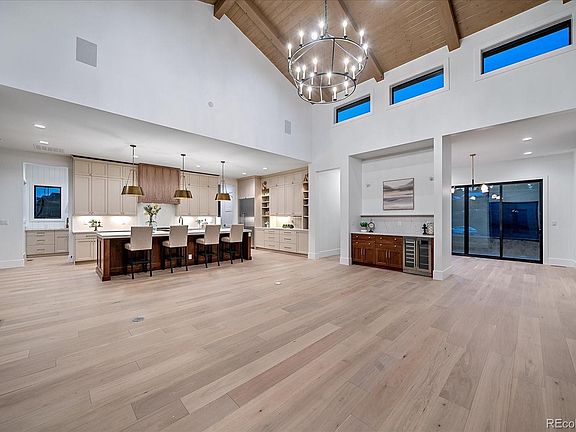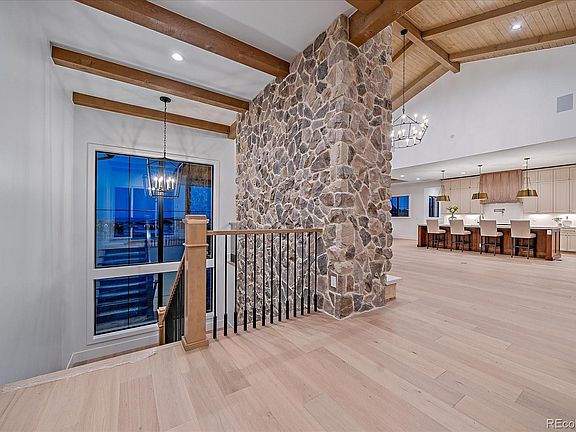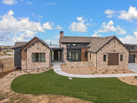 **$150K Price Reduction** Sheffield Homes has truly outdone themselves with the design of this stunning ranch-style Colorado-inspired home! Outfitted on a corner 1.5-acre lot in the coveted Fox Hill Community, this home has been methodically designed and built with creative elements, extensive custom cabinetry, built-ins, stone features, floor plan functionality and so much more. Greeting guests with an impressive foyer and entrance with Colorado farmhouse elements and the front range in picture perfect views, the home welcomes guests into an exposed-beam and T&G great room accented by stone-wrapped fireplace feature to center the room. An open-concept kitchen featuring an oversized walnut-stained island, Jennair appliances, a dining room, custom butler's and a walk-in pantry provides the entertainers ample amounts of space to prepare and enjoy! The main floor Primary Retreat with ample natural light, a stone fireplace and continued beam elements is the ideal retreat. The spa retreat bathroom features a soaking tub, oversized shower, and expansive walk-in closet with closet system. Direct access to the laundry room off the primary closet and hallway provides easy access for homeowners and potential guests - washer and dryer included! Completing the main floor of The Cypress is the guest en-suite bedroom & dedicated office with custom doors and own private patio with incredible natural light! Lower level features include: nearly 10' ceilings, hardwood flooring in recreation and game spaces, exposed beams, walk-out access to a gently sloping yard with fabulous view corridors. The lower level also features a spacious wet bar with iron and glass shelving, a wine wall, option for wine cellar/vault space and ample spaces to play and entertain. Completing the lower level are two sun-lit bedrooms, two bathrooms with room to grow. Fox Hill provides a custom home lifestyle on acreage homesites with convenient city access, 1G of fiber optic technology, to work, play & live!