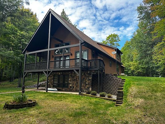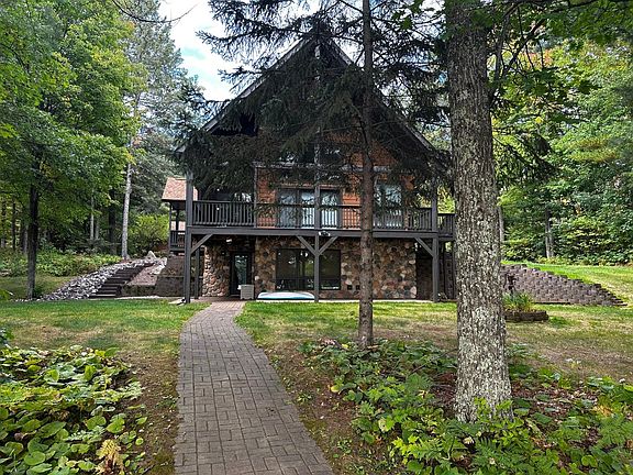 Tucked in at the end of the road on the blacktop driveway is this stunning Chalet on 1.6 acres with 189' of level frontage on Marion Lake. Come see this remarkable Northwoods home which features a lakefront deck with a screened porch and floor to ceiling windows overlooking the lake inviting the outdoors in. Inside on the main level you will find a very inviting open concept great room, kitchen, and dining room with a fireplace, master bedroom suite and laundry. The Lower Level features a family room, kitchenette, office, full bathroom and utility room with a second laundry. The second level loft has 2 large bedrooms and a full bath and also provides access to a large storage room above the attached garage. Don't miss this rare opportunity, come and take a look today!