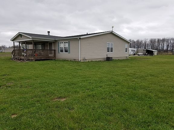 Spacious triple wide sitting on 2 acres with detached 24 x 36 pole barn with electric and concrete. Fenced in back yard with blacktop driveway. This home is 1920 sq ft that offers 3 bedroom and 2 baths. Has laminate flooring throughout and all the bedrooms have walk in closets. Living room has a wood fireplace with a separate office off of it. Kitchen has alot of cabinets with a island and a bar, all appliances included. The dining room is open to the kitchen. Master bedroom is very spacious with a walk in closet and master bath has a garden tub with separate shower. The master offers a separate room that would be great for a sitting room or a nursery. Foam insulation installed in all exterior walls (2017) and new ductwork was installed (2018). Pellet stove is included also. Back yard is private with a wood fence. Sellers have done alot of updates to the home. Home shows bigger than what it looks. Own this home for as low as 3.5% down. **OPEN HOUSE SATURDAY APRIL 27TH 1PM-3PM