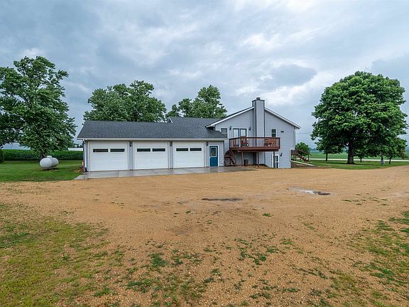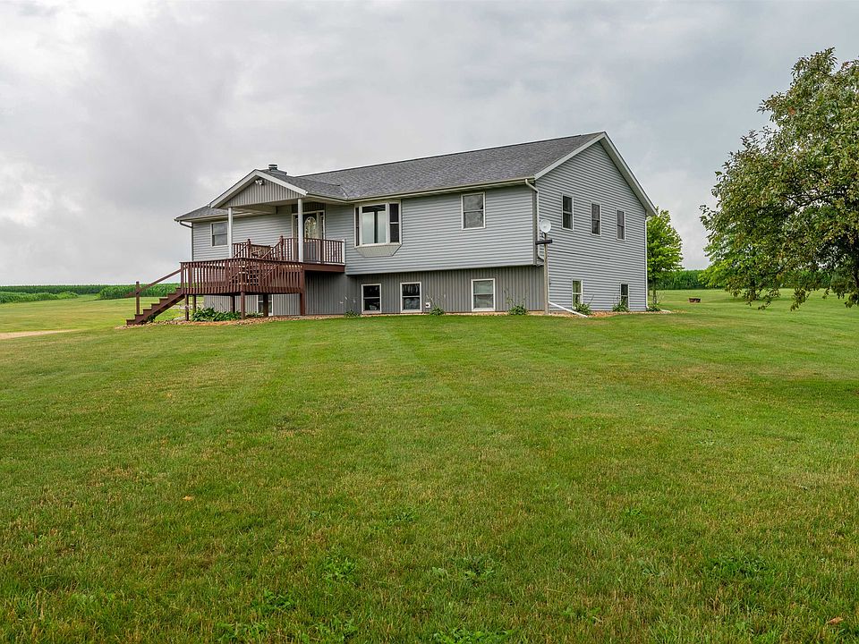 Where has this house been all my life? 5 country acres with an outbuilding! Zoned agriculture. 5 bedrooms in this well built, fabulous home with a massive great room. Cathedral ceiling makes it feel even bigger. First floor also has an office and a den. This raised ranch has great windows in each of the bedrooms. The family room walks out onto a patio. Family room has a gas/wood fireplace. Deck on the front and another on the side of the house. The oversized, heated 3 car attached garage also has access to either the main level or the lower level. All appliances stay with the house. Furnishings are negotiable. The outbuilding is 72' x 46'. It has a section 24' x 46' with a concrete floor. Make an appointment soon! Radon reduction system already installed. Water treatment and reverse osmosis as well! Want to save on your electric bill? It has solar panels! Don't forget the dog with the underground fencing! First floor laundry room.