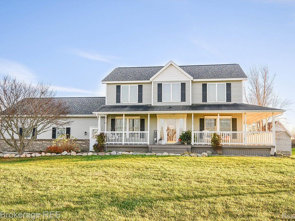 Welcome to your dream home! This gorgeous four-bedroom, 3.5-bath residence on over 8 acres offers the perfect blend of modern updates and timeless charm. As you approach, you’ll be greeted by a beautiful, spacious wraparound porch, perfect for enjoying serene evenings or hosting gatherings with family and friends. Step inside to discover an inviting open floor plan that seamlessly connects the living, dining, and kitchen areas, creating an ideal space for entertaining. The recently remodeled kitchen (2021) features stylish finishes and modern appliances, making it a chef's delight. The home boasts two expansive walk-in closets, providing ample storage space for your wardrobe and personal belongings. The finished walkout basement offers additional living space, perfect for a home theater, playroom, or guest suite. Outside, you’ll find meticulously landscaped grounds featuring a stamped patio (2023) that invites outdoor living. The property also includes a sturdy 1200 sq ft pole barn and an oversized shed, providing plenty of room for your hobbies, tools, or additional storage. Recent updates include a new roof (2020), siding (2024), and air conditioning (2022), giving you peace of mind and comfort in your new home. Don't miss the opportunity to make this stunning property your own! Schedule a showing today and experience the perfect blend of style, space, and convenience in the desirable Davison School District.