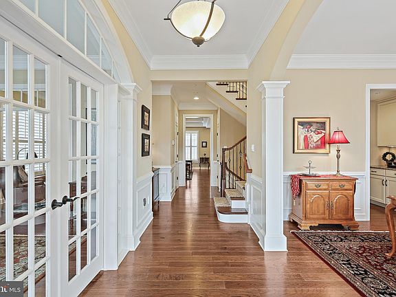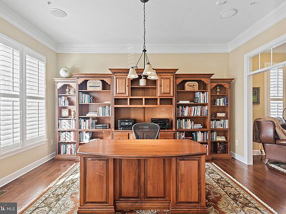 Elegance and luxury perfectly combine in this stellar opportunity to own in coveted Maple Lawn! With a classic brick front and inviting front elevation, this Mitchell & Best Hartford model welcomes you into its bright entry foyer with comfort and beauty. Over $200,000 of options have been added to this home! High-end trimwork and mouldings make for a decadent experience as you step into the main level, with its sunlit spaces, gleaming hardwood floors, and spacious rooms. Formal living and dining rooms make for breezy entertaining, while a private home office is situated through French doors. Make your way into the fabulous family room and kitchen area, the true centerpiece of the home, where top-end fixtures and appointments make for a luxurious lifestyle. The kitchen is grand in scope and features stainless steel appliances, ample cabinet and counter space, a high-end gas range and hood, and a generously sized center island that, along with the sunny breakfast area, is perfect for casual meals. Continue to the upper level, where four generously sized bedrooms await. The fabulous primary bedroom suite is sure to provide endless opportunities to relax, with its abundant size, large window, and attached private bath. The bedroom level is conveniently home to the large laundry room for added comfort. Downstairs, enjoy the finished lower level, providing an abundance of flexible space to suit your needs. A large rec room -- great for your game room or media room -- is ideal for use as you need it, and with a fifth bedroom and full bath, this space is sure to fit your lifestyle. Community amenities include pool, fitness center, tennis courts, pickle ball courts, basketball courts, playgrounds. A vibrant community and welcoming place to live!