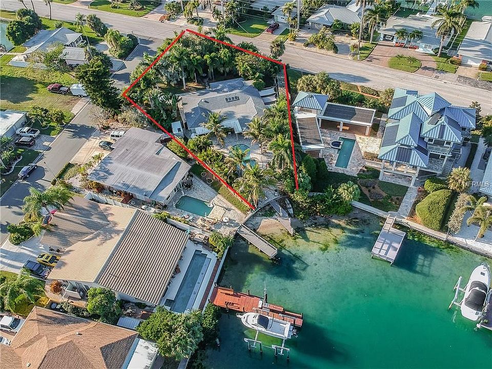 ONE OF A KIND modern contemporary totally redone 4 bedroom 3 ½ bath 1 car garage waterfront home with a heated pool and fenced in back yard sits on a beautiful corner lot on Isle of Palms, very close to the sandy beaches of Treasure Island. If you are into fishing, boating any kind of watersports, sunset & beach fun this location is incredible!!! A palm trees enthusiast's dream, front yard is home to a wide variety of palms that create a lush green canopy providing shade & privacy. As you pull up in the long driveway, you arrive home to what seems to be a small quaint peaceful cottage on an island, until you open the door. Once inside you won't want to leave. The large modern kitchen & open living space make this light & bright home amazing for entertaining. A wall of sliding glass doors extends the open living space feel all the way to the water. You'll want to get up early to have coffee on the covered patio & enjoy the stunning colors of the sunrise over the bay. The backyard oasis is meticulously landscaped to be low maintenance leaving you more time to enjoy a swim in the heated pool, a BBQ on your porch or fishing from your dock. Bring your boat, jet ski, kayak & enjoy a quick ride to John's Pass, the Intracoastal waters & the Gulf of Mexico with no fixed bridges to stop you. There is additional room on the side of the house to store a boat, park a small RV, have a playground or dog run. Check out the 3D tour, Call us today to see this amazing home you don't want to miss it.