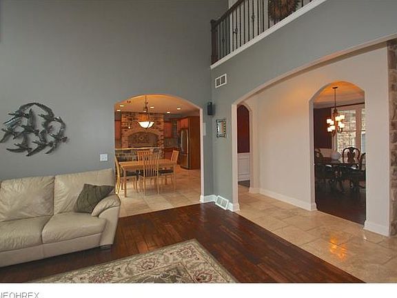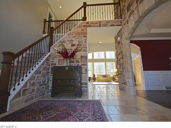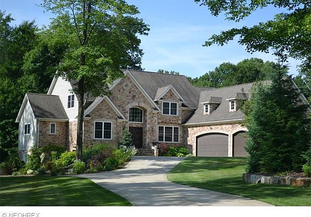 A luxurious 4 BR 4.5 BA home. Property is situated on priv. 4.58 AC of open grass, rolling woods & water views. Grand stone foyer welcomes you, w/immediate access to den w/French doors, hardwood flrs & custom built-ins. Formal dining rm has tray ceiling, crown molding, wainscoting w/beautiful hardwood floors flows into the Great room, viewed from the 2nd flr shows off the 2 story stone fireplace & floor to ceiling of windows allowing the natural light beaming in & illuminating the main living area. Stunning gourmet kit boast the stone around the 5 burner cook top, stainless steel appliances, granite counter w/tile back splash, breakfast bar, kit desk/workstation, walk-in pantry, beautiful travertine stone flrs flows throughout the home. Rear ent offers 1st flr laundry, coat closet & powder rm. Escape out the sliding door off the kit onto huge deck & enjoy nature on the expansive outdoor leisure space. First flr Master complimented by a large walk-in custom closet & glamour bath w/open tile shower extra deep jetted tub & his & her vanities. Second flr features large BR's, guest BR w/en suite, & a bonus rm off BR 2 Additional living space in your totally finished walk out lower level, (approx 1500 sq ft) great for Entertaining which also offers full bath w/tile shower. Enjoy a tranquil setting w/easy commute to downtown or even the airport. Convenient to 422 and LaDue Reservior were you can enjoy fishing & kayaking. Award winning Kenston Schools. Geauga Septic Pass Inspection