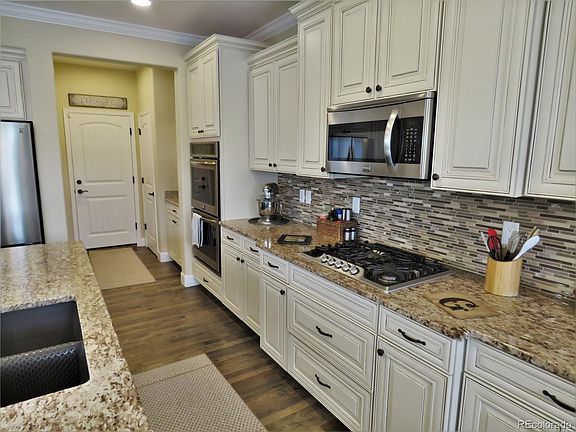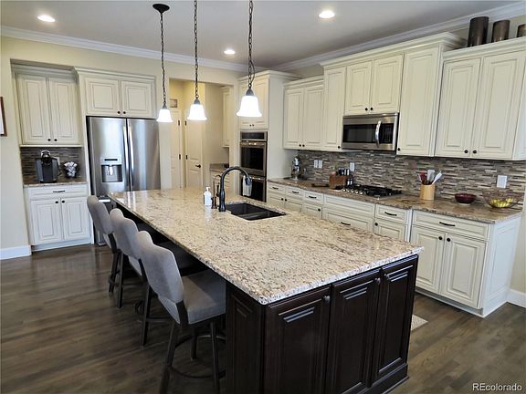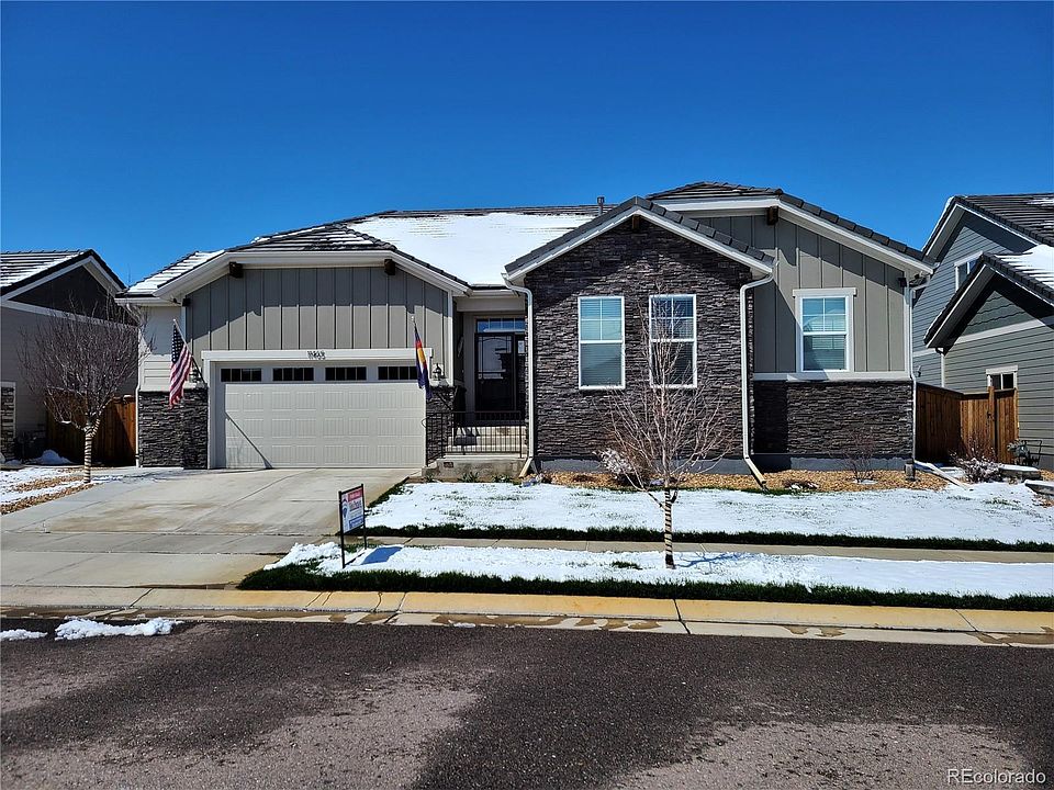 Gorgeous GOLF COMUJNITY RANCH STYLE HOME. This home has been generously upgraded and has a finished basement, and situated by the fantastic Buffalo Run Golf Course within walking distance of the club house with great dining and peaceful patio area. Very close and easy access to the new rec center, several parks & walking paths, shops, restaurants, and within minutes of 470 & 76, for very easy commutes. The Gourmet kitchen has stunning upgrades such as soft close cabinets and drawers, slab granite counter tops, gas cook top, walk in pantry, butler pantry, double ovens, and a large center island w/bar top seating. Rite next to the kitchen/ family room is a very workable, semi enclosed office/work space. The master suite has a nice 5 piece master bath and large walk in closet, and has plenty of for room for any bedroom set. The finished basement has a large theater/entertainment area and includes a full bath and bedroom, plus tons of storage space. The heated garage has tons of electrical upgrades, storage cabinets, service door and even a 1,200 pound (rated) hoist. Other upgrades include: Plantation shutters, 2 surround built in speaker systems, A back yard lighted gazebo and shed w/ electricity, and hardwood flooring throughout home. This home has been very well maintained and is ready to move in.