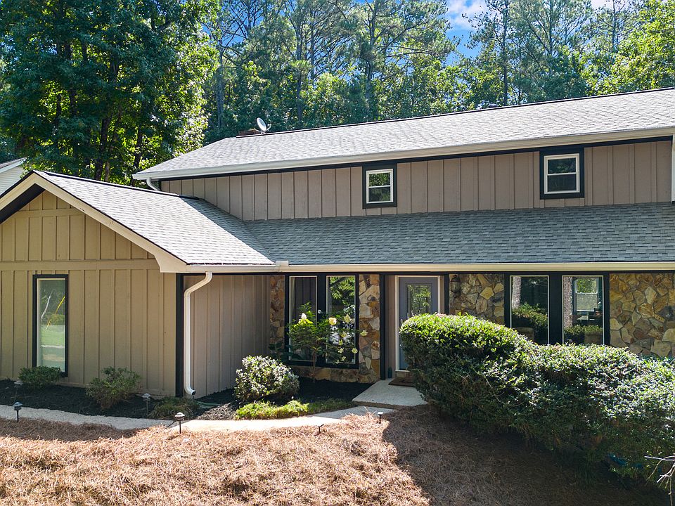 Beautiful home nestled on a large wooded corner lot in delightful Hollyberry: a highly sought after established neighborhood in Roswell. Enter the home with a 2-story foyer complete with a quaint nook for favorite houseplants and an eye-catching staircase. The oversized separate living and dining rooms, separated by an operational set of French doors, flow easily into the kitchen. The heart of the home is open to the welcoming informal living room with bookcases flanking a stone fireplace. The kitchen featuring all the modern stainless appliances, quartz counters, new wall ovens and slim fit microwave offers a convenient breakfast bar and cozy keeping room to serve friends and guests. The family room opens to a delightful screen porch with vaulted and beamed ceiling overlooking the private, fenced backyard sanctuary with an in-ground pool and double decks for grilling and relaxing. There are three bedrooms upstairs with the spacious primary suite separate from the two secondary bedrooms. Both full baths offer double vanities and separate toilet/shower rooms for extra privacy. Finished daylight terrace level has a full galley kitchen, a large bedroom and full bath, an additional fireside den or media room, and storage. This home is well maintained to include new roof and gutters, 2 new HVAC, new water heater, new pool equipment, new attic insulation, replaced pool liner, flooring, new windows throughout, full exterior painting and much more - its just waiting for the next owner's personal touches to make this house a new home. Ideal central location for all the great downtown shopping and entertainment districts of Roswell, Crabapple/Milton and Alpharetta, North Point Mall, Avalon and Highway 400 access. Just minutes to the award winning Roswell Area Recreation and Parks and several other Big Creek system trails. It's no wonder Hollyberry is such a great place to live!!