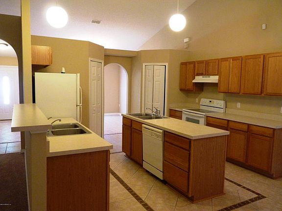 Spacious and open home in a great central/northern Jacksonville neighborhood; convenient to all area services, shopping, interstates, airport and so forth. This 3 bedroom, 2 bath, single-story home has a 2-way-split floor plan - 2027 square feet!!. Large central living and dining area with vaulted ceiling. Spacious eat-in kitchen with and dual pantry storage. Kitchen with ample cabinets & 2 pantries!! Uncommon Food-Prep Island with its own separate full-sized sink!! Nicely situated on quiet conservation lot; private covered/screened patio setting. Concrete Block & Stucco...built to last. MUCH, MUCH, MORE.
