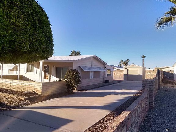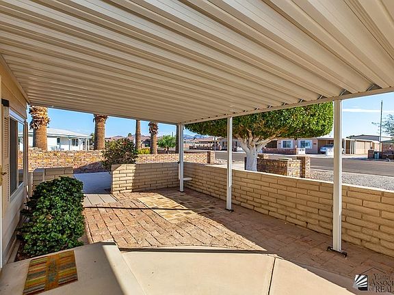 Welcome to this well-maintained 2 bedroom, 2 bath Cavco double-wide located in the desirable 55+ community of Yuma East. This home feels spacious and inviting with vaulted ceilings, exposed wooden beams, and great natural light throughout. The large living room features a charming standalone fireplace and flows easily into the bright, functional kitchen with ample cabinet and counter space. Both bedrooms are comfortably sized, and the primary suite offers plenty of storage. Enjoy low-maintenance living with multiple storage sheds, a long concrete pad with RV access and hookups, independent shed/garage for toys, and a fully fenced yard. Truly turn-key and ready for its next owner!