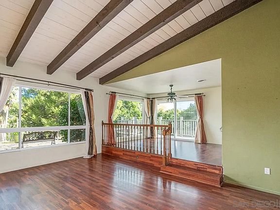 Nestled in the foothills of Mt. Helix, on over an acre w/ views, this home was built & cherished by just one family. Tucked away in a desirable area with lush surroundings! In living room, vaulted ceiling & a vintage stone fireplace opposite picture windows. Fifth bedroom doubles as office w/ 1/2 bath! Cozy den offers built-in bookshelves. Solar (paid) & electrical panel 2020, HVAC 2022 & dual glazed windows! Updated kitchen adjoins laundry room w/ lg pantry! Trex deck! Big lot possibilities, all awaiting for your touch!