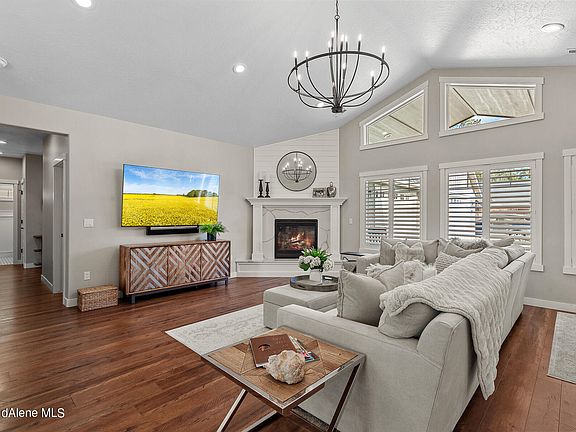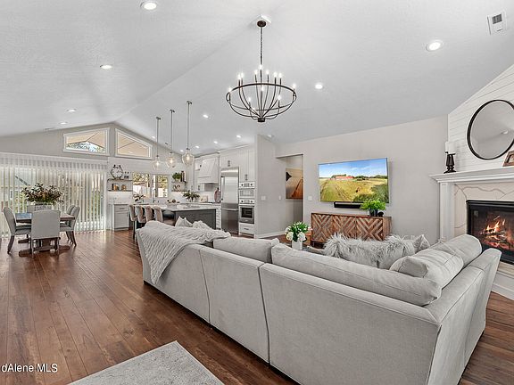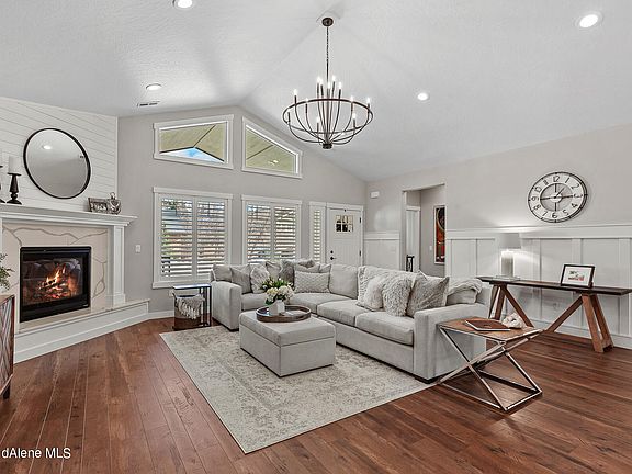 GORGEOUS HOME! Bright and airy, highly upgraded with open concept conveniently located near Hayden Lake and Two Golf Courses. This lovely remodeled home offers 3280 sq ft. of spacious main floor living, 4 bdrms, 3.5 bath and large bonus room. High-end finishes include gourmet kitchen w/Thermador appliances, quartz counters throughout, walk-in pantry w/wine frig. Beautiful wainscoting, custom plantation shutters, oversized laundry room, heated master floor, 3 Zone HVAC thermostats, Lutron lighting w/ dimmers, on demand hot water system, water softener, generous storage throughout the home and a wine room . Enjoy entertaining in the nicely landscaped and fenced backyard. Spectacular sunsets from the west facing covered patio (25' by 50' paved). Automatic sprinklers and landscape lighting. Oversized (40'x30') 4 car garage with epoxy floor and thermostat controlled heat. RV/boat storage adjacent to garage. Located minutes from shopping, restaurants and amenities.