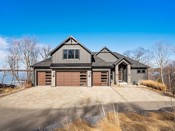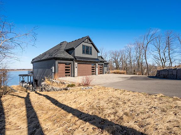 Welcome to this Gorgeous Lake Home. This grand home has it all starting with the gorgeous lake view plus all the outdoor living this home has to offer, patios, outdoor kitchen, lakeside patio, pergolas++ Enter the home and be in awe with all the fine details you would expect from the stone walls, soaring vaulted and beamed ceilings, custom cabinets and built ins thru out. Gourmet kitchen with center island, generous living room with your cozy fireplace and dining space plus a 4 season porch all with a fantastic lake view. Main floor owners suite that you will fall in love with plus the spa like bath with soak tub, walk in shower dual vanities and generous walk in closet and don't forget the beautiful lake view from your suite. Upper level bedroom with sitting area and bath - perfect for guests. Walkout Lower level, with cozy in floor heat, has a fantastic family room with wet bar and island great space to enjoy plus don't forget the view!! 2 more bedrooms and baths in the lower level area plus an office and workout room. A 4+ attached garage that is heated and a lower level garage/storage for all those lake toys, plus a beautiful detached 40x50 garage that is finished and heated to store all those toys. All this and more sitting on a beautiful 4.7+ acre lot it does not get better than this. Come take a look and welcome to lake life living!!