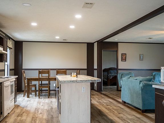Looking for a spacious home on a nice piece of property? This 2018 double wide manufactured home has an open floor plan with a large kitchen consisting of island bar, plenty cabinet space, dish washer and has a dining area. The split floor plan has a large master bedroom on one side with an ensuite master bath equipped with a large counter with dual vanities, a corner soaker tub, separate shower and a large walk in closet. Across the Living and kitchen area are 3 additional spacious bedrooms with a full bathroom, a family room that can be used as a recreations space or office and overlooks the back yard. The laundry room has a side entrance and is large enough to accommodate a freezer or extra refrigerator. The metal storage building, water well pump, and mechanical sewer system were installed in 2018. The property dimensions are 208’ x 260’ and can easily accommodate a large workshop.