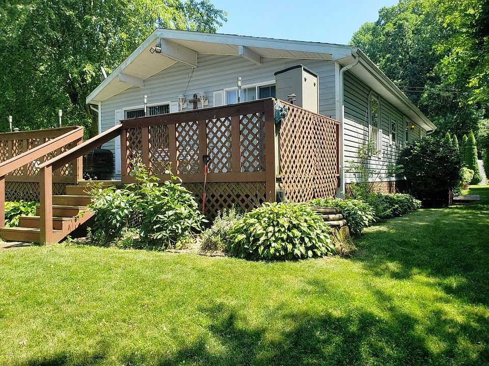 Reduced $4,000. Very nice home w/New Roof Nov 2019 w/35 yr shingles & was complete tear off on house & garage. 50 ft of beautiful St Joseph river frtg with small boat launch. This is not a drive by-you must see! Open concept LR & din area with cathedral ceiling, knotty pine on walls & ceiling, wood burning stove w/stone backdrop, & 2 slider doors to large deck. Included are most furnishings, lawn tractor & 2 window a/c.. Fabulous riverfront view from deck less than 50 ft from waters edge, fish right from your dock that runs the width of the lot & has boat lift. Gutter guards on house & 24 x 30 garage w/ cement floor and electric. Seller incentive of $500 for Cash offer & 30 day closing. Lane 24 is a deeded esmt - property is 50 x 120 w/addt'l 30x50 across the road with storage she