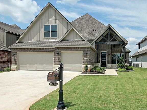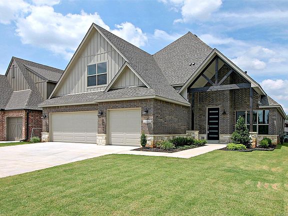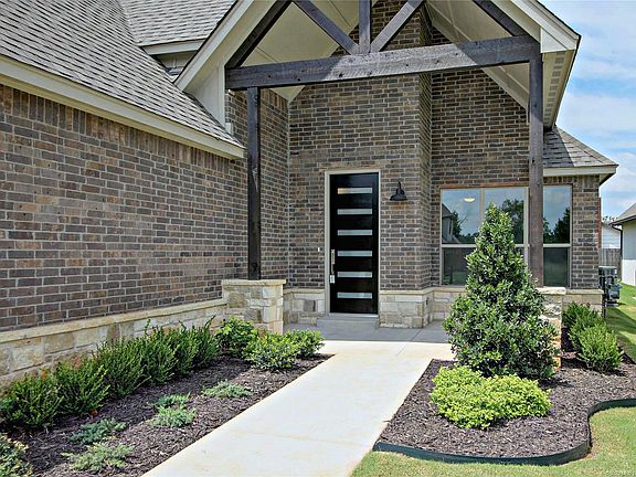 Modern Farmhouse with full brick & stone exterior Covered porch & large covered patio Prof landscaping Sprinkler system Fully fenced backyard Gated access to subdivision Interior features include 4 bedrooms 2 down 2 up Study off entry 3 full baths with Quartz countertops Granite island kitchen with custom painted cabinets Stainless appliances Large walk in pantry Oversized pictures windows Lots of hardwood floors Brushed nickel fixtures & hardware Mud lockers in utility Nest Thermostat 3 car garage