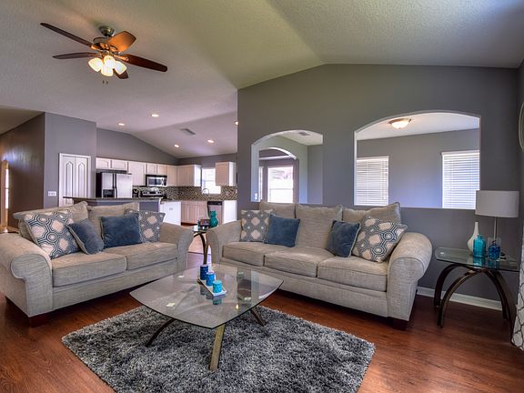 The Home you''ve been looking for: This is it! Nothing left to do! Absolutely IMMACULATE move-in ready. Featuring 1867 square feet of beautiful living space: 3 bedrooms, 2 baths, a sun room,2 car garage. As you walk up to this home you will notice the stone elevation and nice landscaping. Once inside you can''t miss the stunning floors. In the well designed kitchen you will find granite counter tops, with plenty of work space including an island and plenty of cabinets with a trendy back splash completed with all stainless steel appliances. The breakfast area has a bay window. Kitchen is open to the large light & bright Family room with vaulted ceilings and stunning pond views. Perfect for entertaining. The Master Suite features beautiful laminate floors and a large bay window with amazing pond views, his and hers walk-in closets. Master Bath features a spacious garden tub to soak in after a long day at work and a walk in shower. Walk out the back of the home and you will find a nice sized yard overlooking a pond to watch the turtles play. There is absolutely nothing left on your "honey-do-list". All this in conveniently located community of Panther Trace with resort style swimming pools, tennis, a playground and an elementary school right in the neighborhood. Don''t wait, call today before it is gone! This is truly a gem and you must see it! Just minutes to US-301, I-75, shopping, restaurants, entertainment & more. Easy commute to downtown Tampa & MacDill AFB.
