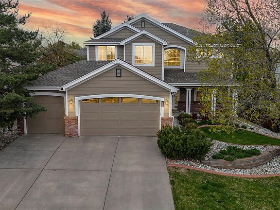 Welcome to Tapestry Hills, a quiet place in Castle Pines. Nestled on a hill, this partially updated 2 story home features a variety of amenities destined to put a smile on your face. Offering 4 bedrooms, 4 bathrooms, an oversized 3 car garage, over 3,300 SF of living space with a fully finished partial basement, main floor office and a beautiful and professionally crafted front yard with backyard retreat. A stroll through this wonderful home reveals a warm and inviting atmosphere where you can visit with your favorite people like having coffee on your covered front porch, sharing stories in your beautiful and cozy den surrounded by plantation shutters and beautiful hardwood floors. Dine to your hearts delight in a formal dining room with a bay window or entertain for hours in the open kitchen and great room wired for speakers. Featuring stainless steel appliances, kitchen island, granite tile counters, tall maple cabinets with lots of storage, kitchen dining area with big windows and natural light. Enjoy the big game or late-night movie in the family room or meander right to the backyard on your new composite deck with a power retractable awning, a fully fenced yard, mature trees and privacy. Upstairs offers 4 bedrooms including the large primary suit with 5-piece bathroom and walk-in closet. Lots of space and rooms for family and guests. Want more space, head to the finished basement with new carpet and an oversized 3/4 bath with slate tile for a getaway, workout, game room or more. Many extras including, new water heater, insulated garage doors and openers, attic fan, whole house humidifier, plumbing wet bar area, crawl space, built in security system, new front walkway, fresh exterior paint, updated fixtures, etc. Come take a look and you'll be glad you got a chance to experience a special community in Castle Pines. Surrounded by great neighbors, nature, trails, hiking, parks and schools. It's a nice place to live!