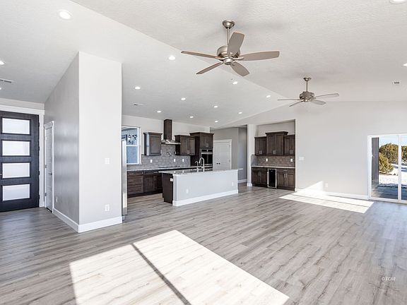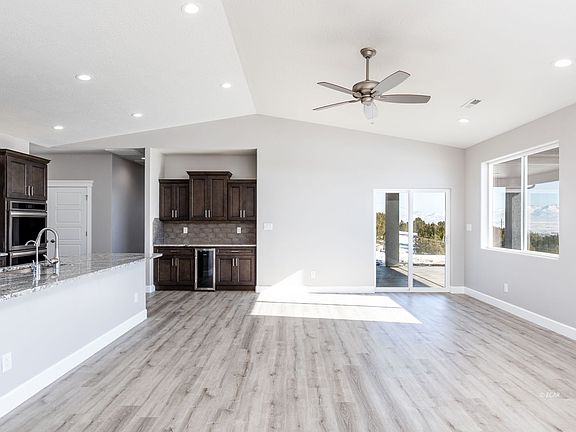 Welcome to the Merwin Home 4 with custom changes! The homes sites on 10 acres with a private well outside the HOA.This single level 2,518-SF floor plan offers 5 bedrooms and 2 bathrooms along with a 690-SF 2-car. Enter through an 8ft front door and admire the 9ft ceilings and luxury vinyl plank flooring you'll see throughout the main areas of the home. Vaulted open concept kitchen and living room spaces are complimented with a dining room and sliding glass door that opens up to a large patio. Chefs kitchen offers gourmet double door refrigerator/freezer, convenient pot filler, stainless steel vented hood over an electric stove, oversized coffee bar and a walk-in pantry including multiple electrical outlets. Oversized granite topped island has a deep single basin kitchen sink and Moen motion sense kitchen faucet. Master ensuite with double sink vanity, rectangular sinks, elongated toilet bowl, soaker tub, a rain fall shower head over the walk-in ceramic tile surrounded shower and Euro glass door. This home also offer a water softener, whole home filtrations system and R/O system.