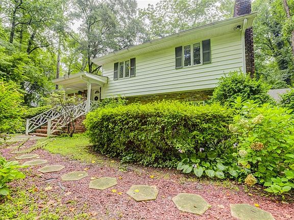 Traditional split level set in a lush garden setting surrounded by woods, nature's Paradise. Walking distance to Emory University and CDC. The home features a formal living and dining room, updated eat in kitchen with wooded view from the bay window. 4 bedrooms and 2 baths up; Family room with FP down, bedroom and bath down. Sun Room with garden views. Two car carport. Live in the woods in the city.