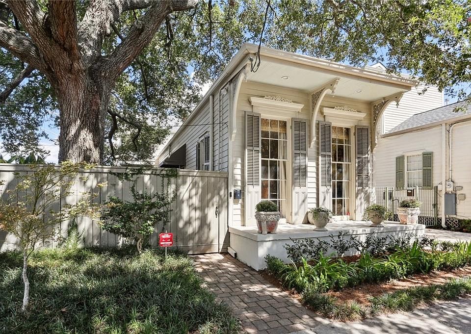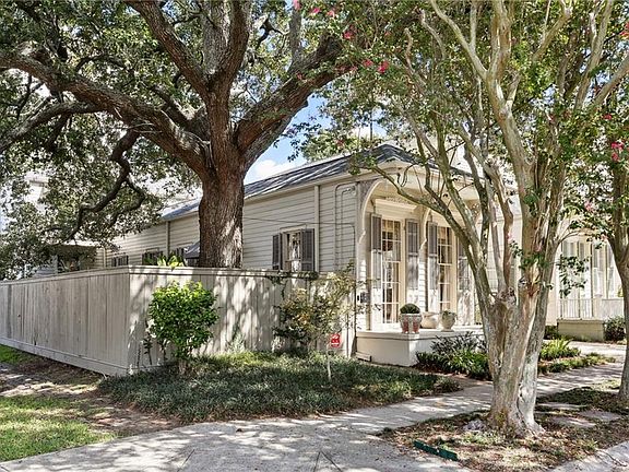 Oh so charming! Victorian camelback home on a corner lot with a lush, tree-shaded, landscaped side patio with gorgeous oak tree and privacy fence. This home is in a luscious setting on an inviting block just steps to all Mardi Gras parade routes! Beautiful wide pine floors, high ceilings, wonderful natural light. Large living-dining room is open to the kitchen with stunning new marble countertops and backsplash. An extra-spacious family room has built-in shelving, tile floor, and opens to the side porch & relaxing patio. 2 bedrooms and bath down. Large laundry with storage. Upstairs is a huge, light and airy master bedroom with a fabulous beamed cathedral ceiling, and French doors to a balcony overlooking the wonderful oak tree and patio. It has a huge walk-in closet and bath with jacuzzi tub. This appealing home has a brand new roof. There's an outside shed and dog run behind the house.
