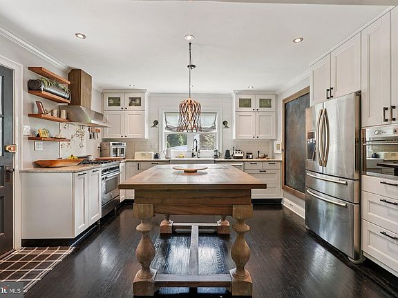 Step inside this stunning 4-bedroom, 2.5-bath residence and discover a home that blends high design with everyday comfort offering a rare mix of style, substance, and walkability. The cozy living room invites you in with rich wood floors and a wood-burning fireplace—perfect for cozy evenings at home. The kitchen is a true showstopper, expertly designed for both form and function. With handmade artisan tile, a custom-built hutch featured in Better Homes and Gardens, modern appliances, a wood butcher block island, and a spacious dining area with built-in bench seating and hidden storage, this kitchen is straight out of an HGTV dream. Off the kitchen, you’ll find a convenient half bath and a spacious den flooded with natural light—a perfect home office or secondary living space. Upstairs are four well-sized bedrooms with ample closet space. The primary bath has been tastefully remodeled to evoke a serene, spa-like feel. This home features updated Anderson windows for energy efficiency and abundant natural light, plus central air on the second floor for year-round comfort. The fully fenced yard offers space to garden, play, or unwind. A heated, detached 2-car garage with upgraded electric is ideal for car enthusiasts, a home gym, or workshop. The basement provides additional space for hobbies, projects, or storage. All of this is walkable to Highland Elementary, Abington Junior and Senior High Schools, Jefferson Abington Hospital, the train station, and great local shopping and dining. If you’ve been searching for a home in Abington that feels like it was styled by a designer but lives like a dream—this is it.