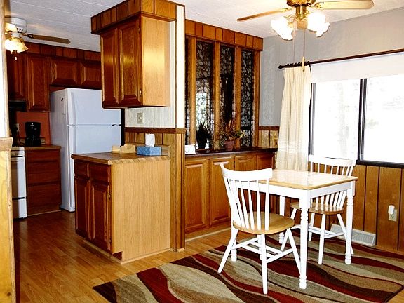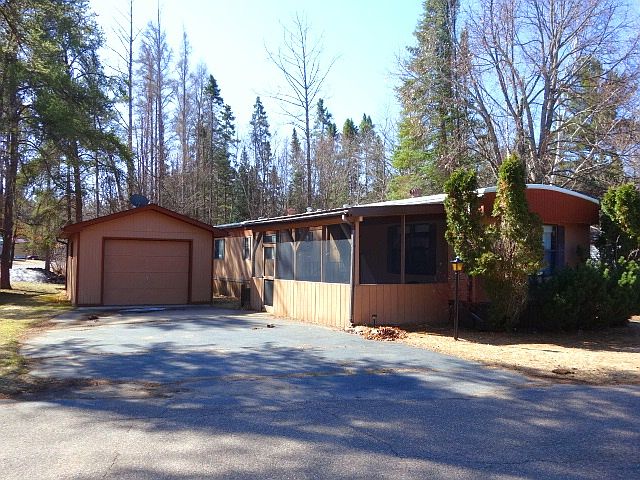 Nicely updated 2BR/1BA mobile home is ready for you to enjoy as a year round or a vacation home! Located in Evergreen Estates, which is a 55 or older mobile home park, offers low maintenance living in the Northwoods. The open concept living room, kitchen and dining area are perfect for entertaining. The sunken living room is bright and inviting. Plenty of cabinet space and abundant counters in the spacious kitchen with the added bonus of a pantry for your storage needs. Convenient built-in cabinets are featured in the dining area. There is also a laundry area. An added bonus is the attached screened porch to enjoy for grilling or just relaxing. Also included is a 1 car detached garage with garage door opener. Located close to town and conveniences, so don't miss this amazing opportunity!