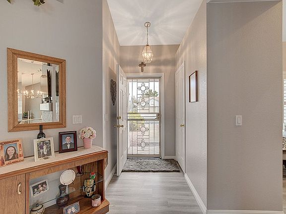 Henderson Single Story, 3-Car Garage, Pool & Spa Home. Features: Living Room with Mosaic Accent Gas Fireplace, Ceiling Fan, Vinyl Plank Floors. Dining with Access to Backyard. Kitchen with Black Stainless Steel Appliances, Pantry, Breakfast Nook, Pass-Through to Dining Room. Bedrooms have Lush Carpet. Primary Bedroom with En-Suite Bathroom: Double Sink Corian Vanity, Shower with Tile Flooring. 2nd & 3rd Bedrooms with Ceiling Fans & Shutters. Double Sink Full Bath/Shower Guest Bathroom. Separate Laundry Room with Cabinets. 3-Car Garage. Backyard with Gas Heated Pool & Spa, Kooldeck & Covered Patio. Vaulted Ceilings, Potshelves, Shutters, Security Doors, Water Softener and So much more!