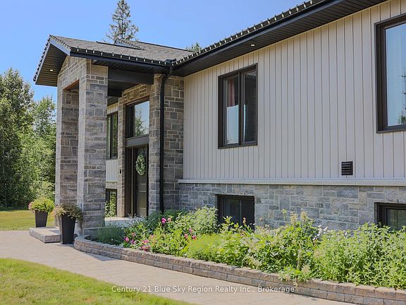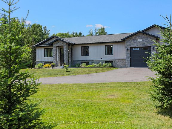 Welcome to perfection. This absolutely stunning 2020 custom built home is being offered for sale for the very first time. Sitting on just under 1.5 acres of meticulously landscaped property this home surely goes above and beyond expectations and features high end finishes to immensely impress. Walking through this massive stone built entrance you definitely get the luxury feel walking into this home. Beautifully crafted vaulted ceilings in the living, dining & kitchen areas with huge triple pane windows with southern exposure. The custom built kitchen is home to a walk-in pantry along with granite countertops. Entrance to the back deck where you can bbq right off the kitchen that is steps away from your backyard escape. With a total of 6 bedrooms in the home- 3 being on the main level, you are sure to have lots of room for growing families or even multigenerational living. The primary bedroom welcoming a walk-in closet along with a beautifully done 4xPC ensuite. With upgrades going the extra mile having the bedroom sound proofed as well as a solid wood door. There are 3 total bathrooms in the home, all being 4xPC bathrooms that are beautifully completed & tastefully done. With a laundry shoot being located in the guest bathroom upstairs, laundry is made easy when heading downstairs! In the lower level of the home you are welcomed by a huge entertaining area, perfect for guests or a second living quarter. Three more bedrooms are found downstairs along with the 3rd bathroom. Heading into the 30x28ft heated garage you are met with 14ft ceilings with huge garage doors, perfect for anyone with large vehicles & toys! Headed outside you will find beautiful wrap around gardens and landscaping to your secluded backyard oasis. This home is truly everything you'd want to build & more. Everything is finished with high end taste & done simply to perfection. An immaculately built home for anyone seeking space, style, & serenity in a prime Powassan location. Come see for yourself